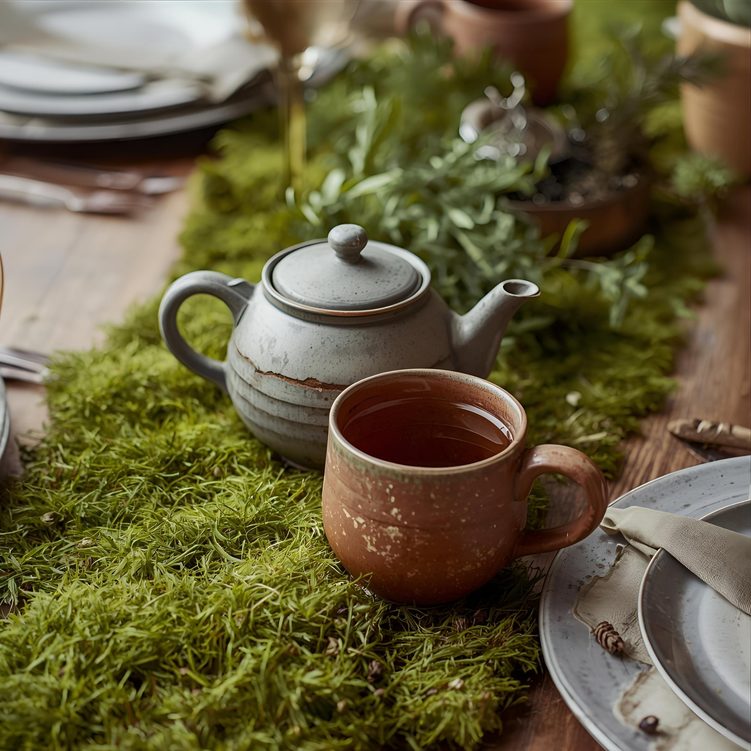 - Ginger or Peppermint teas served in rustic teapots, or jugs of sparkling and still grape juice.