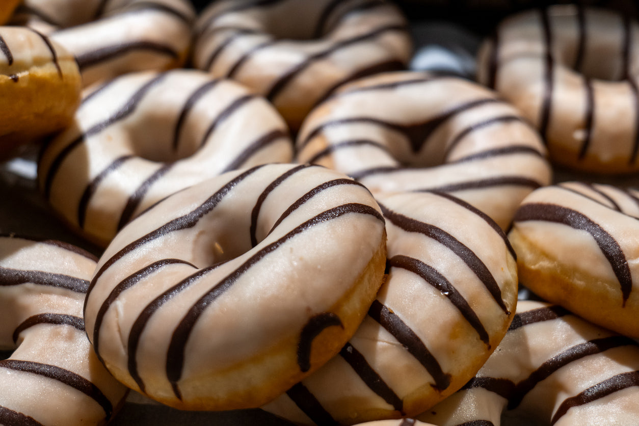 - Mini safari donuts. A selection of little ring donuts dipped in white chocolate with zebra stripes of dark chocolate piping; milk chocolate; caramel glaze. These could be displayed on wooden stands or a crate.