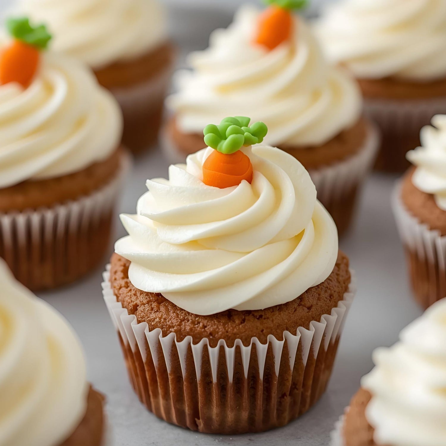 - Carrot patch cupcakes, topped with a swirl of cream cheese frosting and a tiny fondant carrot.
