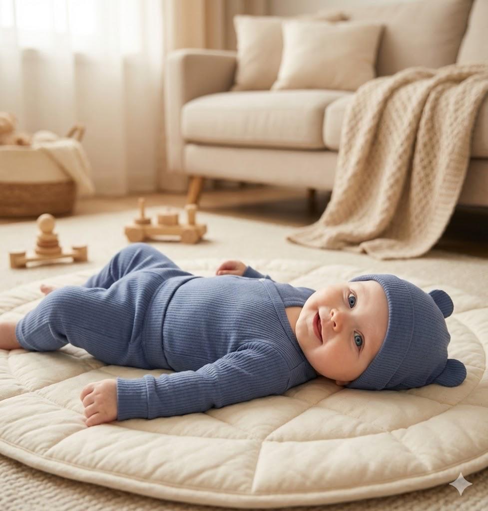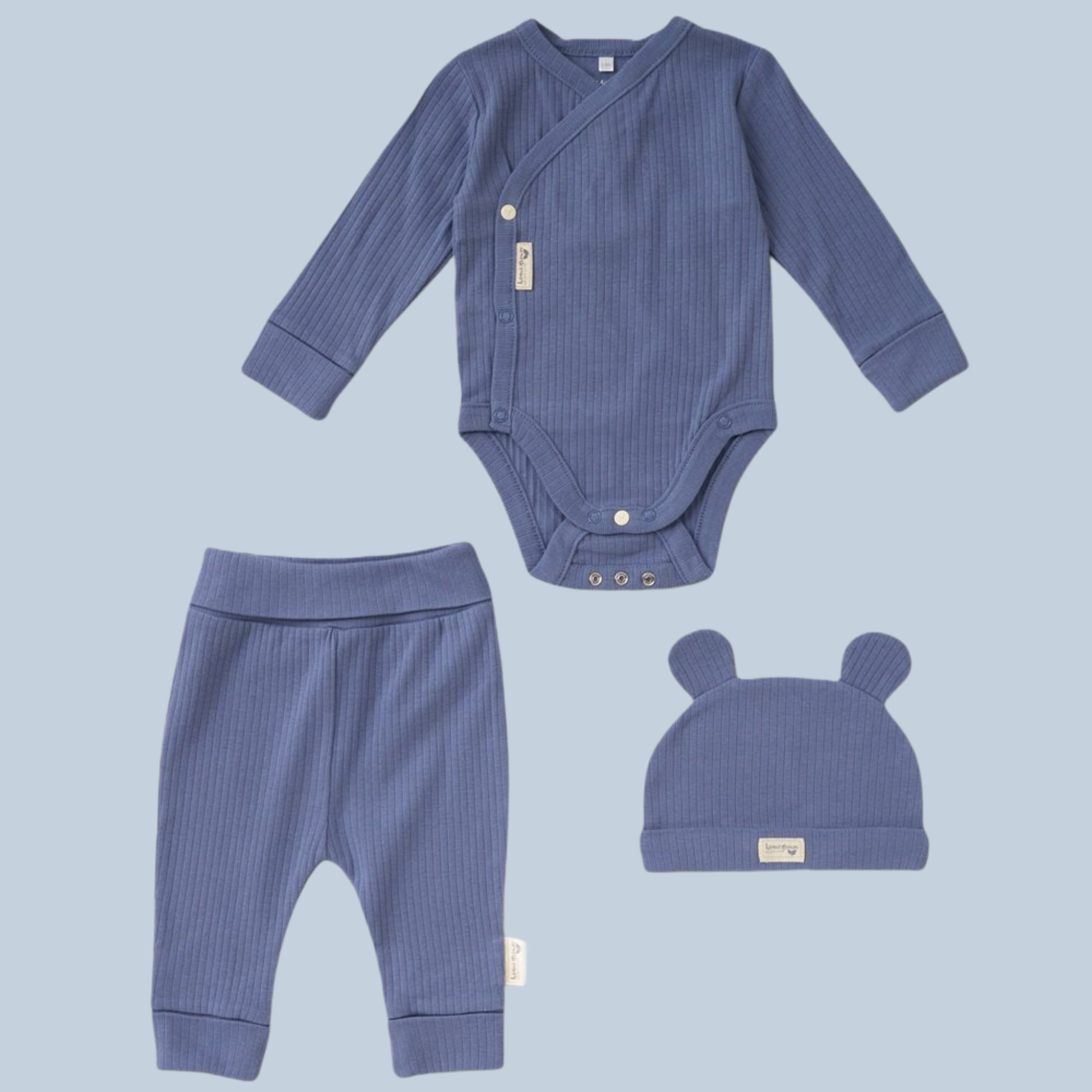 100% Organic Cotton Outfit (Dusky Blue Ribbed)