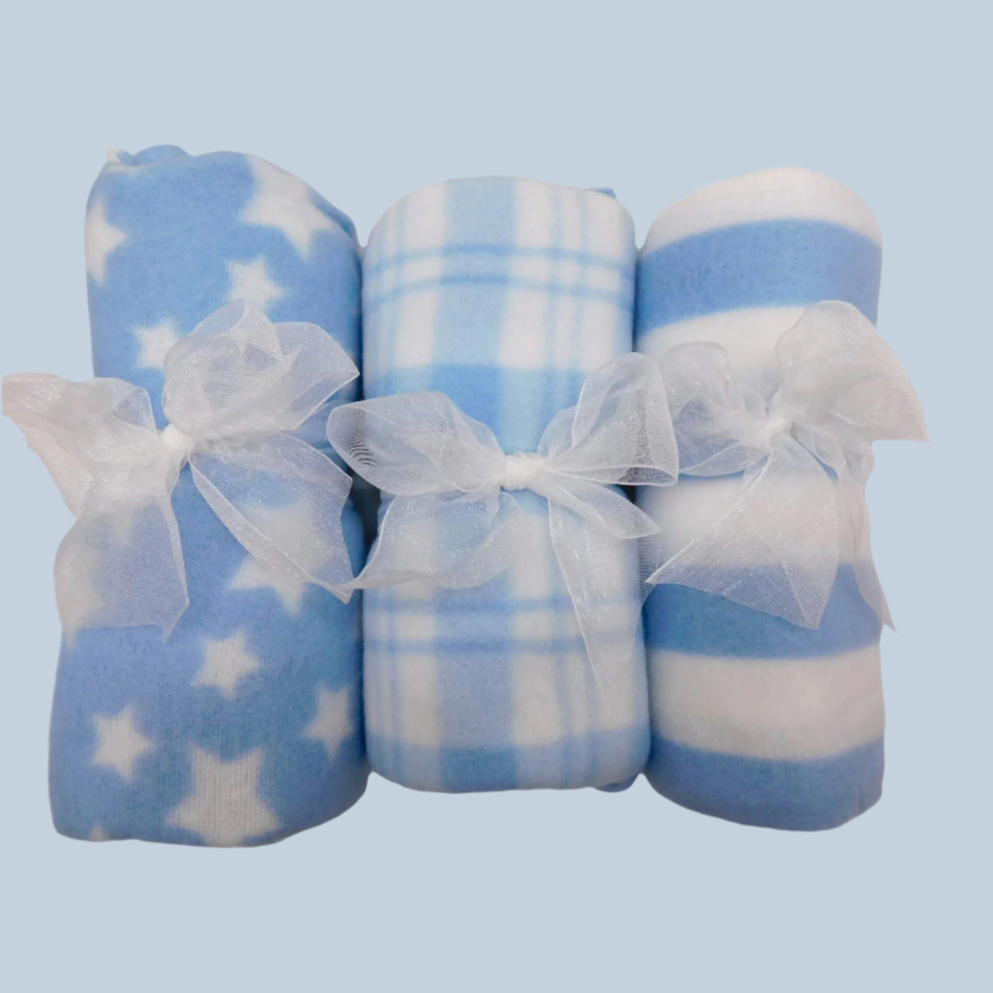 1 x Blue fleece pram blanket This pram blanket measures 75 x 75 cm when open and comes with one of three patterns. It is super soft, light-weight and washes well.